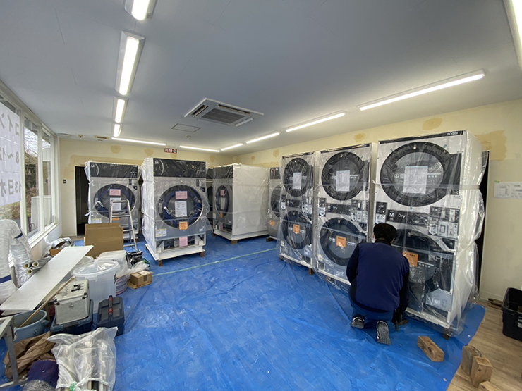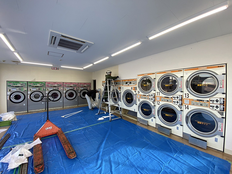 福島県福島市にある白洗舎様では、長年使用されてきたコインランドリーの設備を、最新設備へすべて入れ替える工事を行いました。