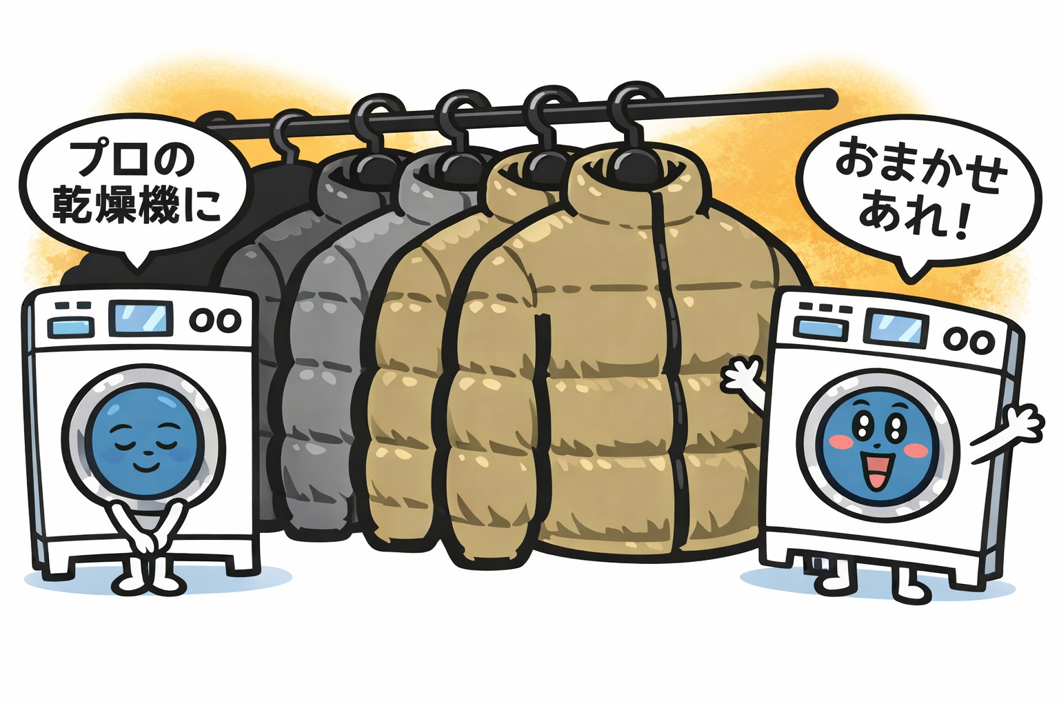 クリーニング店では、業務用の回転式乾燥機を使い、羽毛専用の乾燥方法で乾かします。